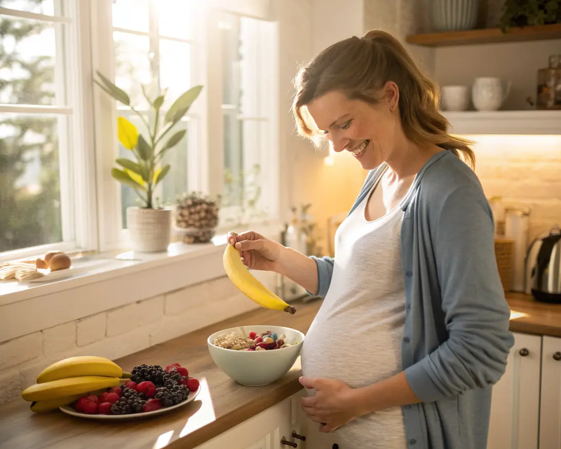 Błonnik to sprzymierzeniec dobrego trawienia – a że wiele kobiet ciężarnych miewa z nim trudności, tym bardziej warto o to zadbać. Jeden średniej wielkości banan ma około 105 kalorii, co czyni go świetną przekąską – sycącą, a przy tym lekką.